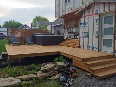 Nous installons et rénovons vos façades avec des matériaux de qualité : bois, vinyle, aluminium et CanExel. Le revêtement améliore l’apparence, la protection et la valeur de votre maison. Nos solutions sont durables, esthétiques et adaptées aux conditions climatiques de Portneuf et Mauricie.