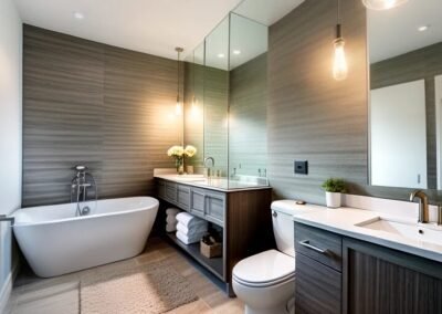 - Intégration de solutions modernes, telles que des douches à l’italienne, des miroirs connectés et des luminaires LED.